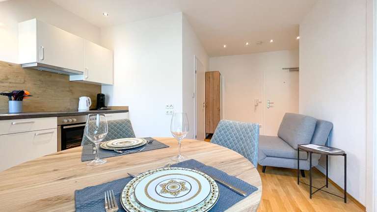 Die Ferienwohnung verfügt über 1 Schlafzimmer und bietet eine gut ausgestattete Küche mit Kühlschrank und Geschirrspüler. Des Weiteren ist sie mit einem Flachbild-TV, einem Sitzbereich sowie 1 Badezimmer mit Dusche ausgestattet. Handtücher und Bettwäsche werden bereitgestellt.