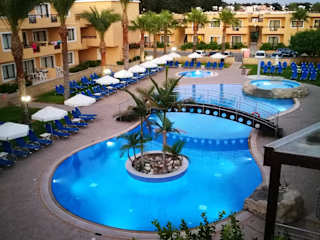 Die Apartments sind geräumig und einfach eingerichtet. Jedes Apartment verfügt über einen Balkon, wobei einige Balkone eine malerische Aussicht über Paphos bieten. Zur Ausstattung gehören auch eine Küchenzeile sowie die Möglichkeit, die Reinigung während des Aufenthaltes abzulehnen.