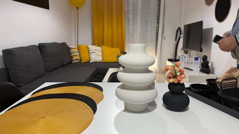 Die Ferienwohnung verfügt über ein Schlafzimmer, einen Flachbild-TV und eine Küche, die mit einem Kühlschrank und einer Herdplatte ausgestattet ist.