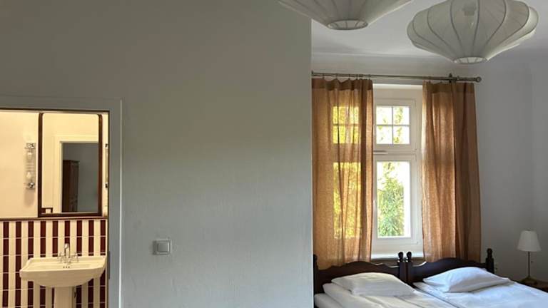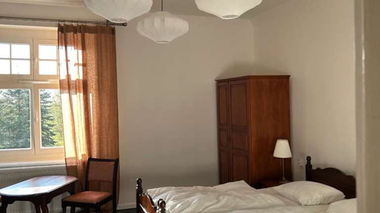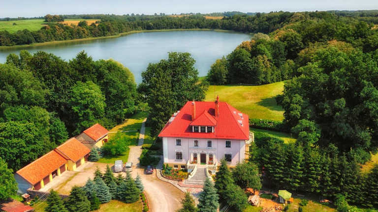 Die Unterkunft Pałac Pozorty befindet sich in Pozorty, in der Nähe des Oberländischen Kanals und etwa 118 km vom Lech-Wałęsa-Flughafen Danzig entfernt. Die idyllische Lage bietet einen eigenen Strandbereich und Zugang zur Natur, ideal für Wanderungen und Velofahren.
