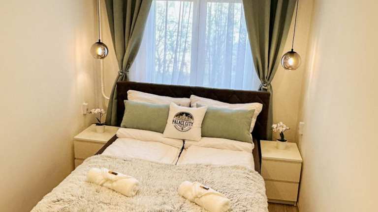Palace City Apartman, T13, AC, Klima bietet Übernachtungsmöglichkeiten mit Annehmlichkeiten wie kostenlosem Wifi und einem Flachbild-TV.