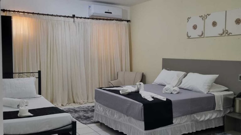 Das Palace Hotel Três Poderes hat klimatisierte Zimmer mit eigenem Badezimmer sowie kostenlosem Wifi. Es wird ein Buffet-Frühstück angeboten. Die Unterkunft stellt auch ein Familienzimmer zur Verfügung.