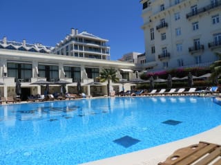Das Palácio Estoril ist ein elegantes Hotel mit einer opulenten Einrichtung und einer Gesamtkapazität von 161 Zimmern, darunter 31 Suiten und 3 Einzelzimmer. Das Hotel erstreckt sich über 5 Etagen und ist mit einem Aufzug erreichbar. Es bietet verschiedene Serviceleistungen, darunter einen 24h-Sicherheitsdienst, Zimmerservice, einen Weckdienst und medizinische Betreuung. Eine Reihe von Geschäften, darunter ein Supermarkt und Souvenirshop, sind ebenfalls im Hotel vorhanden. Das Hotel ist barrierefrei und verfügt über einen Garten zur Erholung.