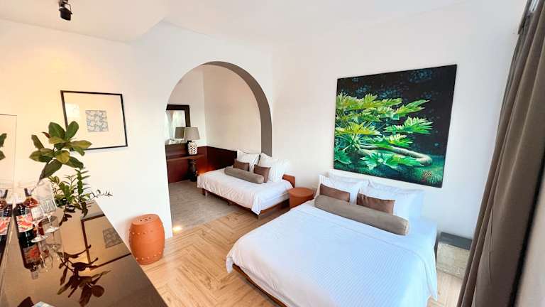 Alle Zimmer des Palassa Private Residences sind mit einem Flachbild-Kabel-TV, einem Safe, einem Wasserkocher und einer Minibar ausgestattet. Die Doppelzimmer verfügen über einen Balkon, während die Zweibettzimmer mit einer Terrasse ausgestattet sind. Die eigenen Badezimmer sind mit einer Dusche, einem Bademantel und kostenfreien Pflegeprodukten versehen.
