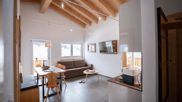 Die Apartments bieten einen Balkon mit Bergblick, einen Sitzbereich, einen Satelliten Flachbild-TV sowie ein eigenes Badezimmer mit Dusche und Haartrockner. Zur Ausstattung zählen ausserdem eine Mikrowelle, eine Kaffeemaschine und ein Wasserkocher.
