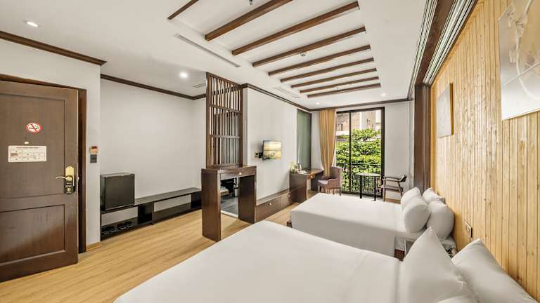 Das Palazzo Luxury Hotel & Bistro befindet sich in Da Nang, nur 2 Gehminuten vom Strand My Khe entfernt. In unmittelbarer Nähe befinden sich das Dorf Non Nuoc sowie die Song-Han-Brücke, die beide in etwa 10 Fahrminuten erreichbar sind. Die Altstadt von Hoi An ist in 35 Minuten mit dem Auto zu erreichen. Den internationalen Flughafen Da Nang erreichen Gäste in ca. 15 Minuten.