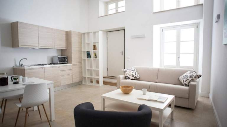 Die Zimmer im Palazzo Torriglioni sind schallisoliert und haben eine private Ausstattung mit Klimaanlage. Es sind auch Familienzimmer vorhanden. Die Bequemlichkeit umfasst eine voll ausgestattete Küche mit Kühlschrank und Kaffeemaschine sowie moderne Annehmlichkeiten wie einen Flachbild-TV.