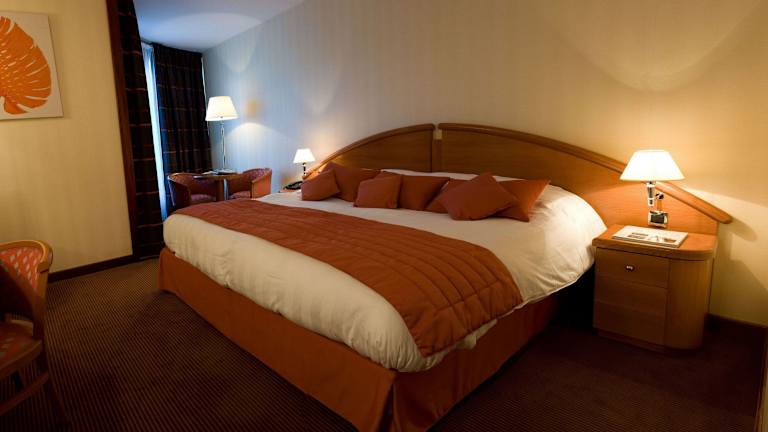 In den Zimmern sind Klimaanlage, Heizung und ein Balkon vorhanden. Die Zimmer sind mit einem Doppelbett und einem Sofabett ausgestattet, wobei Zustellbetten auf Anfrage erhältlich sind. Weitere Annehmlichkeiten umfassen einen Safe, eine Minibar, Schreibtisch, Tee-/Kaffeemaschine und ein Bügelset. Das Badezimmer ist mit Dusche und Badewanne ausgestattet und bietet Haartrockner sowie Bademäntel. Rollstuhlgerechte Zimmer sind ebenfalls buchbar.