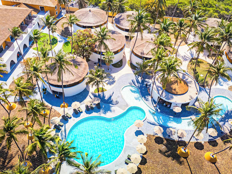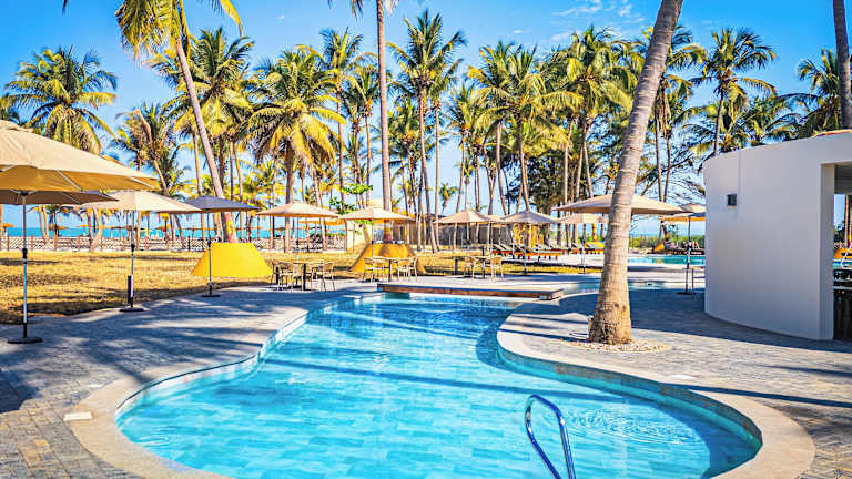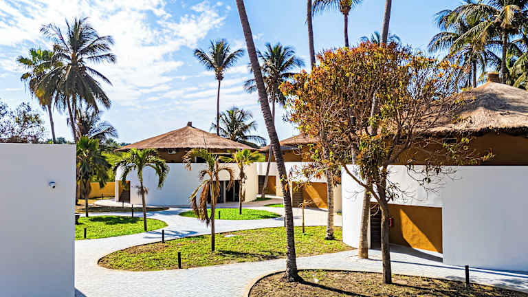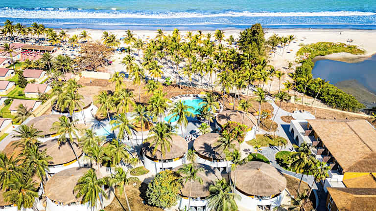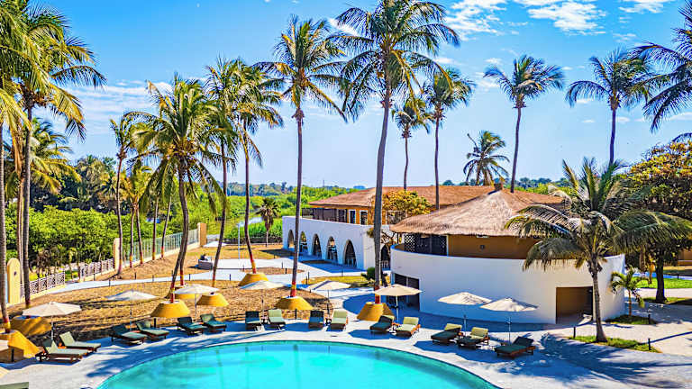 Das Hotel befindet sich in Serrekunda, in unmittelbarer Nähe zum langen Kotu Beach, einem bekannten Sandstrand Gambias. Um die Strandbar mit Liegestühlen wiegen sich Palmen und bieten eine entspannte Atmosphäre.