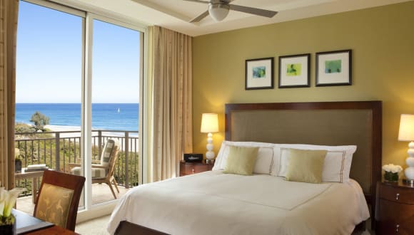 Die Zimmer sind mit Klimaanlage, individuell steuerbarer Heizung, einem Balkon oder Terrasse mit Meerblick, Teppichboden, einem Doppelbett, Queensize-Bett oder Kingsize-Bett ausgestattet. Zustellbetten sind auf Anfrage verfügbar. Weitere Annehmlichkeiten sind ein Safe, eine Minibar, ein Schreibtisch, eine Tee-/Kaffeemaschine sowie ein Bügelset. Jedes Zimmer verfügt über ein TV-Gerät mit Satellitenempfang, Wi-Fi, einen Föhn und Bademäntel. Badezimmer sind mit Dusche, Badewanne und Whirlwanne eingerichtet. Rollstuhlgerechte und Familienzimmer sind ebenfalls buchbar.