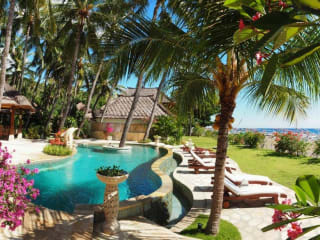Gäste des Palm Garden Amed Beach & Spa Resort Bali können den Außenpool und den Garten des Resorts nutzen. Wassersportaktivitäten wie Windsurfen und Segeln werden in der Nähe angeboten. Es gibt auch ein Wellnessbereich mit Massagen und Schönheitsanwendungen.