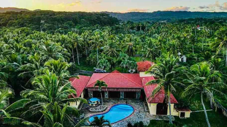 Das PALM HOUSE - LUXURY VILLA - SAMANÁ - Ocean Front in Sánchez ist eine exklusive Unterkunft, die alle Annehmlichkeiten für einen luxuriösen und entspannten Urlaub bietet. Mit einem Außenpool, einem Garten und einer Terrasse können Sie die Sonne und den Meerblick genießen. Die Villa verfügt über fünf klimatisierte Schlafzimmer, ein geräumiges Wohnzimmer und eine voll ausgestattete Küche. Die Mitarbeiter an der Rezeption sind rund um die Uhr für Sie da und sprechen Englisch und Spanisch. Außerdem gibt es einen Kinderspielplatz, einen Fahrradverleih und eine Autovermietung. Der internationale Flughafen El Catey ist nur 68 km entfernt.