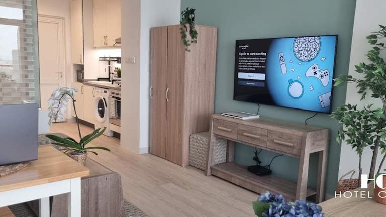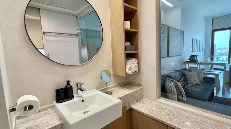Die klimatisierten Wohneinheiten sind mit Parkettböden ausgestattet und verfügen über ein eigenes Badezimmer mit Badewanne oder Dusche sowie einen Haartrockner. Die Zimmer bieten zudem einen Flachbild-TV, einen Schreibtisch, eine ausgestattete Küche und einen Balkon mit Meerblick.