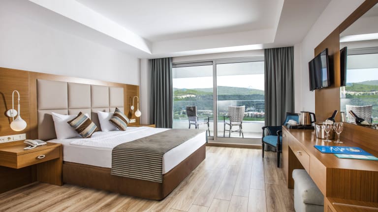 Die Zimmer im Palm Wings Ephesus Beach Resort sind modern gestaltet und bieten eine Vielzahl von Annehmlichkeiten wie Klimaanlage, WLAN, Minibar und einen Balkon oder eine Terrasse. Verschiedene Zimmertypen sind verfügbar, darunter Familienzimmer mit Verbindungstür und direkte Poolzugänge sowie Standardzimmer mit eingeschränktem Meerblick. Alle Zimmer sind mit Flachbildfernsehern und modernen Badezimmern ausgestattet.
