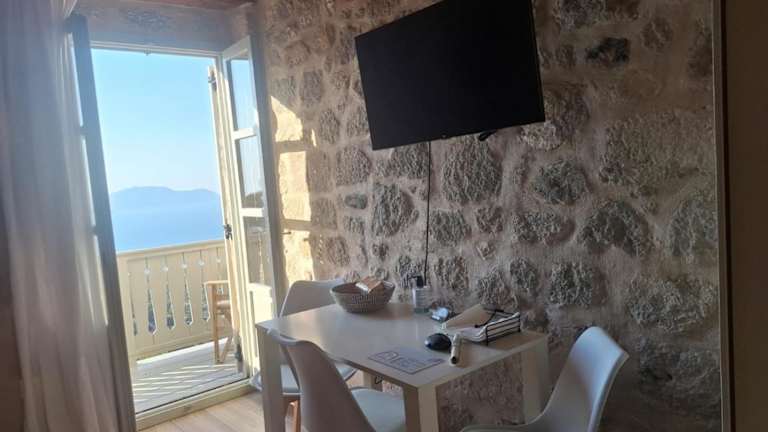 Die klimatisierten Wohneinheiten sind mit Parkettböden ausgestattet und verfügen über ein eigenes Badezimmer sowie einen Flachbild-TV. Darüber hinaus sind die Zimmer mit einem Schreibtisch, einer vollständig ausgestatteten Küche und einer Terrasse, die Meerblick bietet, versehen. Ein voll ausgestattetes eigenes Badezimmer mit Dusche und Haartrockner ist ebenfalls vorhanden.