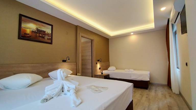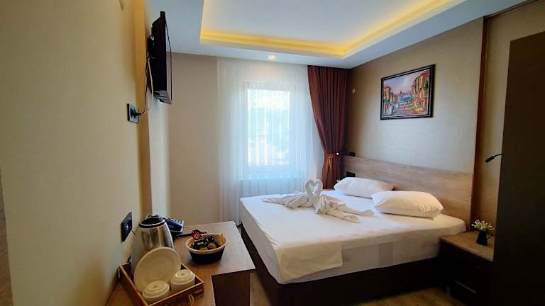Die Zimmer im Palmiye Suites Hotel sind komfortabel und mit einem Schreibtisch ausgestattet. Klimaanlage und Flachbild-TV sorgen für zusätzlichen Komfort. Einige Zimmer bieten einen herrlichen Blick auf die Stadt. Bettwäsche und Handtücher stehen Ihnen zur Verfügung, um Ihren Aufenthalt noch angenehmer zu gestalten.