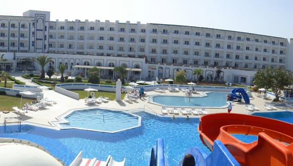 Das Hotel Palmyra Holidays Resort & SPA gehört zu die Kette BLUE STAR HOTELS, liegt in der Touristischen Area von Skanes – Monastir, 4 Km vom Flughafen Monastir entfernt. Das 3 Sternen + Hotel, total renoviert, liegt Direkt zum Meer, es besteht auf 410 Zimmern, WLAN, Anfangshall, verschiedenen Bars und Restaurant, 7 Rutschen für Kindern und Erwachsenen, 4 Schwimmbäder, 1 Hallenbad, SPA Center, Tagungsraum, Parkplatz, Animation Programme Tagsüber und Abend,