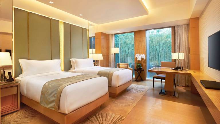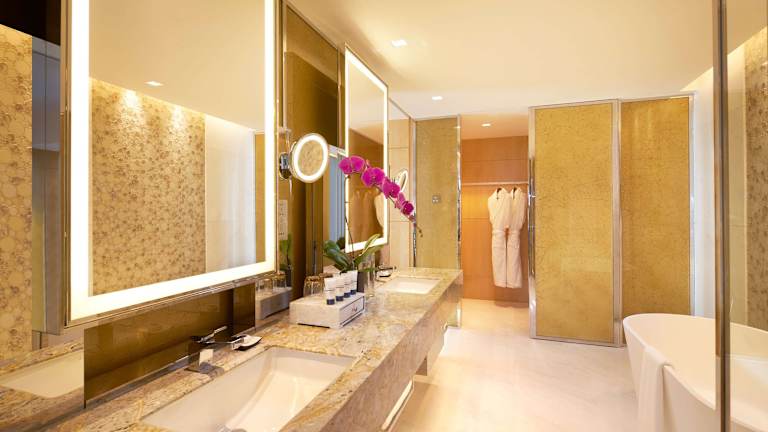 In den Zimmern stehen Klimaanlage und Heizung zur Verfügung. Jedes Zimmer ist mit Teppichboden ausgestattet und verfügt über ein Kingsize-Bett oder ein Sofabett. Die Zimmer bieten einen Safe, eine Minibar, einen Schreibtisch, ein Kühlschrank sowie eine Tee-/Kaffeemaschine. Das eigene Bad ist mit Whirlpool, Dusche und Badewanne ausgestattet. Ein TV-Gerät mit Satelliten-/Kabelempfang, WiFi und ein abendlicher Gute-Nacht-Service sind ebenfalls vorhanden.
