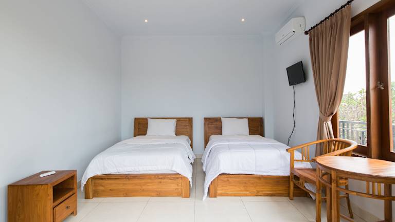 Die klimatisierten Zimmer im Pande Homestay sind gemütlich und bieten einen angenehmen Rückzugsort nach einem Tag voller Abenteuer. Jedes Zimmer verfügt über eine eigene Terrasse, auf der Sie entspannen können. Zur Ausstattung gehören auch ein Fernseher, ein Schreibtisch und ein Sitzbereich. Das private Badezimmer ist mit einer Warmwasserdusche ausgestattet.