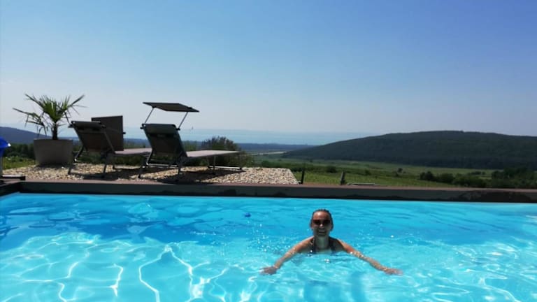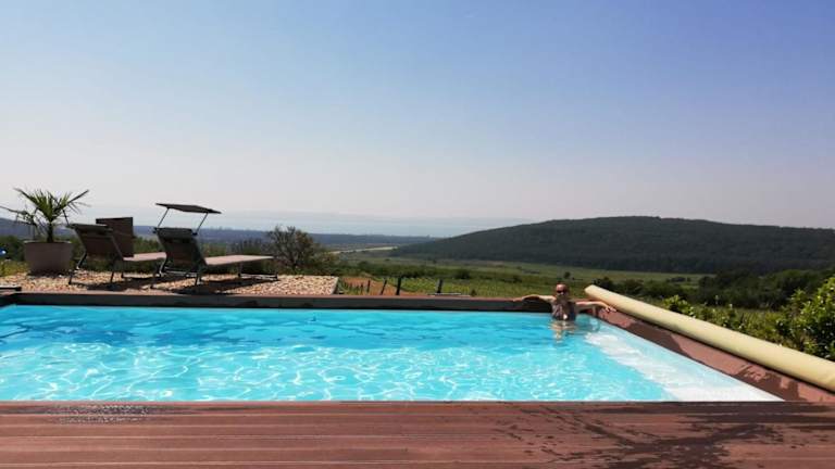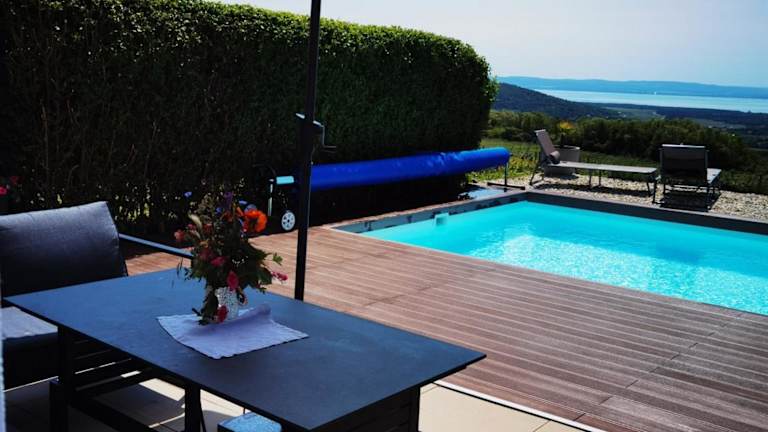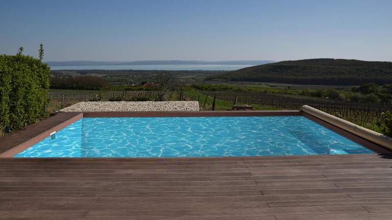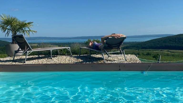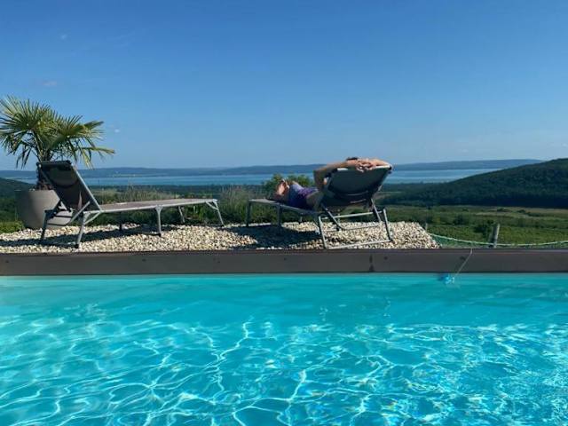 Panorama, Balaton ist eine charmante Unterkunft, die über einen saisonalen Aussenpool, einen Garten und eine Terrasse verfügt. Zusätzlich stehen ein kostenloser Privatparkplatz und Wifi zur Verfügung.