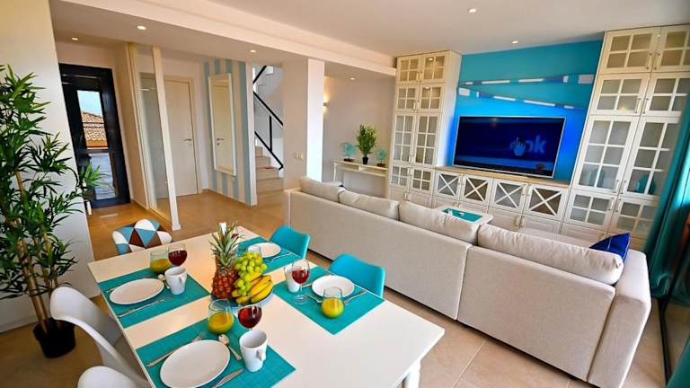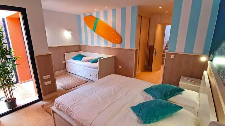 Die Ferienwohnung verfügt über 4 Schlafzimmer, 2 Badezimmer sowie eine voll ausgestattete Küche. Zudem sind Bettwäsche und Handtücher vorhanden. Ein Balkon mit Meerblick und eine Terrasse laden zum Entspannen ein. Ausserdem steht ein TV zur Verfügung.