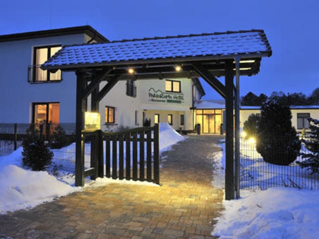 Das Hotel liegt in idyllischer Lage, nur wenige Schritte vom Thüringer Wald entfernt, nahe des kleinen Dorfes Neuendorf. Die kaum entfernte Burgruine "Frankenstein" und der Thüringer Wald, sowie andere sehenswerte Orte, ermöglichen Ihnen die Umgebung zu genießen. Der wunderbare Blick auf die Region machen den Aufenthalt im Panoramahotel zu einem Ereignis der ganz besonderen Art, Viele Sport- und Freizeitmöglichkeiten im Umkreis des Hotels und in den größeren Städten, laden Sie ein, Ihre Tage erlebnisreich zu gestalten. Wir freuen uns auf Ihren Besuch im Panoramahotel "Am Frankenstein".