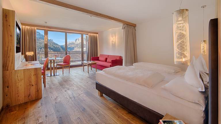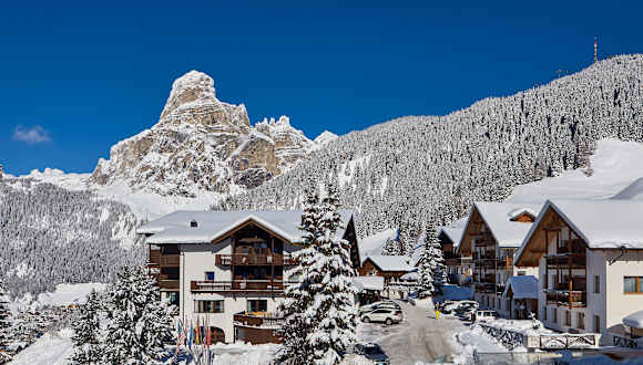Das Sporthotel Panorama befindet sich 1 km oberhalb der Ortschaft Corvara, inmitten der Natur mit traumhaftem Ausblick über Corvara und den Dolomiten.