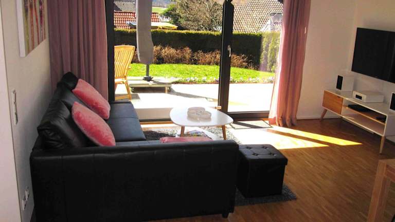 Die Ferienwohnung besteht aus 1 Schlafzimmer, 1 Badezimmer, einem Essbereich und einer voll ausgestatteten Küchenzeile. Zur Ausstattung gehören ebenfalls Bettwäsche, Handtücher und ein Flachbild-TV mit Kabelkanälen. Eine Terrasse mit Gartenblick rundet die Bequemlichkeit der Unterkunft ab.