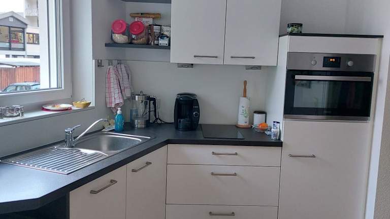 Die Unterkunft bietet eine Küche, die mit einem Kühlschrank und Geschirrspüler ausgestattet ist. Es sind keine spezifischen Informationen zu Verpflegungsmöglichkeiten vorhanden.