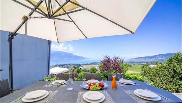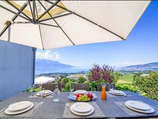 Die Panoramic Holiday Villa in Montreux ist eine elegante Unterkunft mit Klimaanlage, die über eine Terrasse und einen Balkon verfügt. Sie wird von einem privaten Gastgeber betrieben und bietet ausreichend Platz in Form von drei Schlafzimmern, einem Wohnzimmer und einer vollständig ausgestatteten Küche. Die Villa ist für Nichtraucher und bietet Parkmöglichkeiten sowie kostenlose Privatparkplätze.
