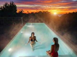 Die Panoramic Villa mit geheiztem Pool und Whirlpool bietet eine heimelige und gepflegte Unterkunft für bis zu sechs Gäste. Zur Ausstattung gehören eine voll ausgestattete Küche, ein Essbereich sowie drei Schlafzimmer und drei Badezimmer. Der Garten lädt zum Verweilen ein, während der private Pool und die Terrasse mit Sicht auf die Stadt zur Erholung einladen.
