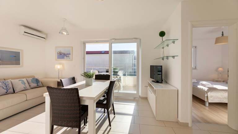 Die Zimmer der Pansion Burin sind komfortabel und verfügen über Balkone, die einen schönen Ausblick über die gesamte Bucht bieten. Die Ausstattung umfasst unter anderem Klimaanlage, Heizung und WLAN.