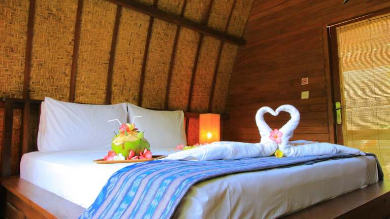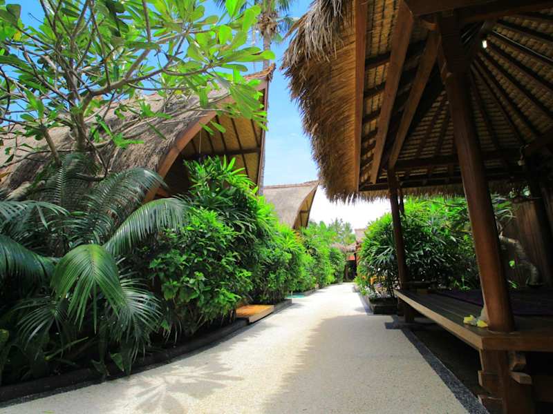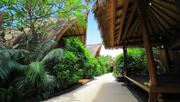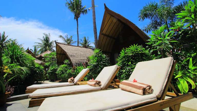 Das Pantai Karang befindet sich landeinwärts im Norden der Insel Gili Trawangan, umgeben von Kokospalmen und atemberaubenden, ortstypischen Dörfern. Die Unterkunft liegt ca. 15 Gehminuten von den weissen Sandstränden entfernt und ermöglicht einen erholsamen Aufenthalt. Der Hafen Gili Trawangan ist mit dem Velo in 10 Minuten erreichbar, während ein Schnellboot in 40 Minuten den Hafen der Insel Lombok ansteuert.