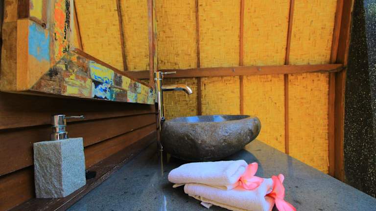 Das Pantai Karang bietet hohe Bequemlichkeit in freistehenden Hütten. Die Unterkunft verfügt über einen Aussenpool mit Sonnenterrasse aus Holz sowie kostenloses Wifi in allen Bereichen. Die Gäste haben die Möglichkeit, in einem heimeligen Ambiente zu verweilen und die entspannende Umgebung zu geniessen.