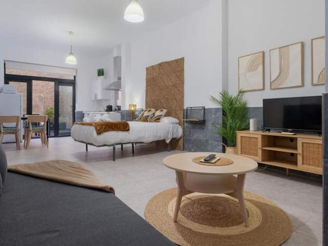 Die Ferienwohnung bietet ein Schlafzimmer und ein Badezimmer, ausgestattet mit einem Flachbild-TV, einem Essbereich und einer voll ausgestatteten Küche. Die heimelige Einrichtung ermöglicht es den Gästen, sich wie zu Hause zu fühlen. Zu den mitgelieferten Annehmlichkeiten gehören Bettwäsche und Handtücher sowie eine private Terrasse.