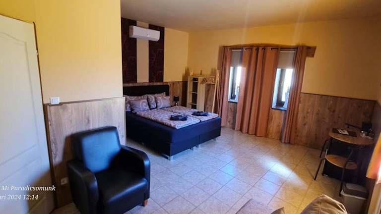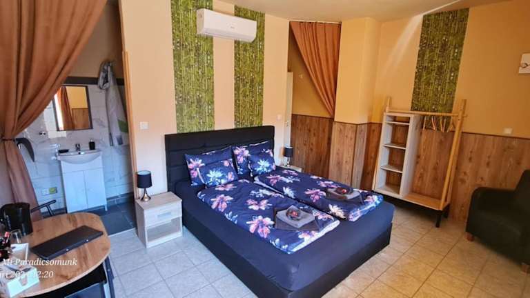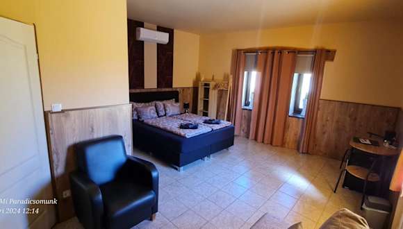 Panzio A mi Paradicsomunk bietet Übernachtungsmöglichkeiten in einer heimeligen Atmosphäre mit einem saisonalen Aussenpool, einem kostenlosen Privatparkplatz und einem schönen Garten. Zu den Annehmlichkeiten gehören eine Terrasse, eine Gemeinschaftslounge sowie eine Gemeinschaftsküche. Das Hotel erlaubt Haustiere und ist eine Nichtraucherunterkunft.