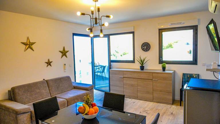 Die Unterkunft umfasst ein Wohnzimmer, einen Balkon, einen Fernseher sowie eine Dusche, kostenlose Pflegeprodukte und einen Haartrockner. Gratis Wifi steht den Gästen ebenfalls zur Verfügung.