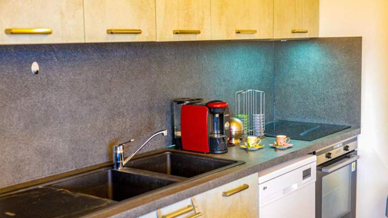 In der Wohnung befindet sich eine gut ausgestattete Küche mit Kühlschrank, Geschirrspüler und Ofen. Es sind keine weiteren Informationen zu Verpflegungsmöglichkeiten vorhanden.