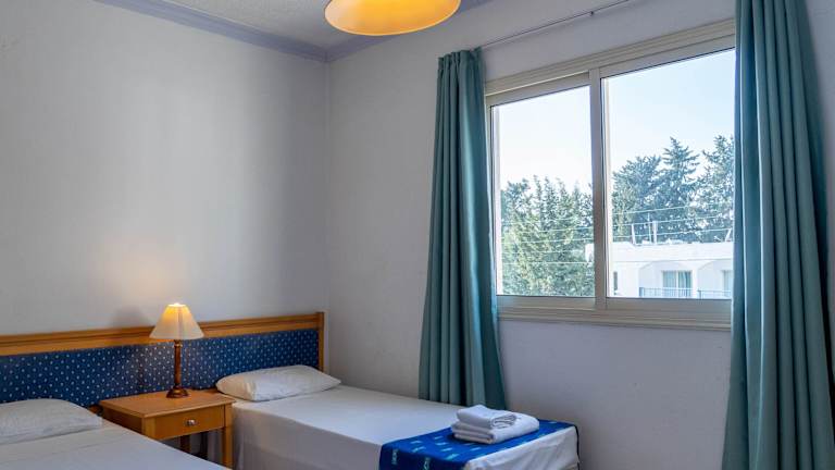 Die Zimmer im Resort sind als Nichtraucherzimmer konzipiert und bieten ansprechende Annehmlichkeiten. Die Standard Zimmer (Hotel Twin Room) sind ca. 22 m² gross und verfügen über einen Balkon, Klimaanlage, Sat-TV und ein Badezimmer mit Haartrockner. Einige Unterkünfte bieten zusätzlich eine kleine Küche oder Küchenzeile, um sich selbst zu versorgen.