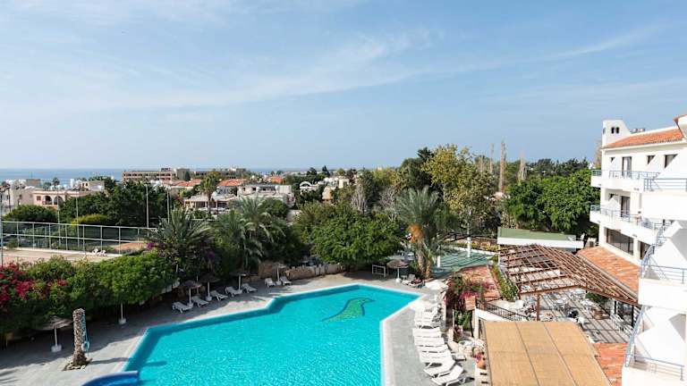 Das Paphos Gardens Holiday Resort bietet einen individuellen Komfort in einer ruhigen, von üppiger Vegetation umgebenen Umgebung. Es handelt sich um ein kombiniertes Selbstversorger- und Hotelresort. Die Unterkunft umfasst 17 Gebäude mit insgesamt 230 Zimmern, darunter Appartements und Studios. Schattige Gärten und eine Sonnenterrasse sorgen für eine heimelige Atmosphäre, während Innen- und Aussenpools sowie Wellnesseinrichtungen wie eine Sauna und Massagen entspannende Möglichkeiten bieten. Das Resort zeichnet sich durch seinen hervorragenden Service aus, unterstützt durch ein deutsch sprechendes Kundenservice-Team, das rund um die Uhr erreichbar ist.