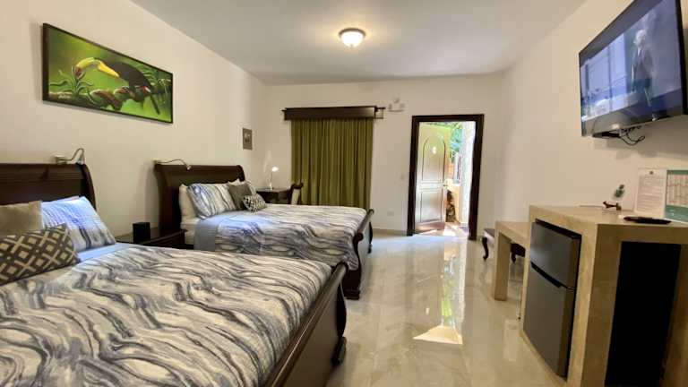 In den Zimmern ist ein Wohnzimmer mit Küche und Badezimmer vorhanden. Eine Klimaanlage sorgt für ein angenehmes Raumklima. Die Zimmer sind entweder mit einem Kingsize-Bett oder einem Sofabett ausgestattet; in einigen Zimmern gibt es auch einen Balkon. Zudem sind ein Safe, eine Minibar, ein Kühlschrank und eine Tee-/Kaffeemaschine verfügbar. Unterhaltungsmöglichkeiten wie Telefon und TV-Gerät sind ebenfalls vorhanden. Die Badezimmer verfügen über eine Dusche, Badewanne oder Whirlwanne sowie einen Haartrockner. Barrierefreie Badezimmer sind auf Anfrage ebenfalls buchbar.