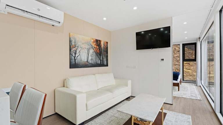 Das Ferienhaus hat ein Schlafzimmer und ist mit einem Flachbild-TV ausgestattet. In der Küche sind eine Mikrowelle und eine Herdplatte vorhanden.