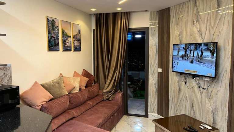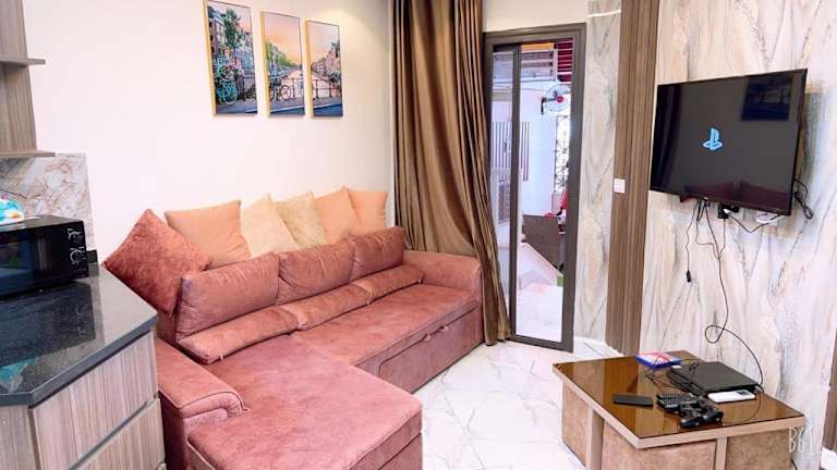 Die Ferienwohnung besteht aus einem Schlafzimmer, einem Wohnzimmer sowie einer voll ausgestatteten Küche mit einem Kühlschrank und einer Kaffeemaschine. Zwei Badezimmer mit Bidet und Dusche sind ebenfalls vorhanden. Handtücher und Bettwäsche werden zur Verfügung gestellt. Die Unterkunft ist klimatisiert und verfügt über Nichtraucherzimmer.