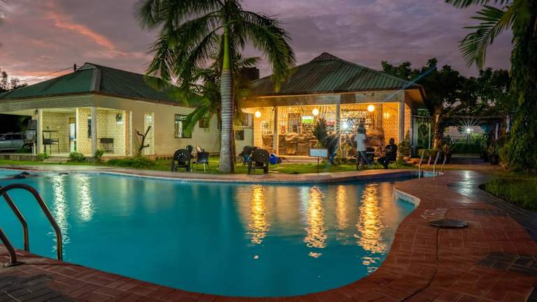 Gäste können ein à la carte oder kontinentales Frühstück geniessen. Das Restaurant serviert afrikanische, amerikanische und britische Küche, mit vegetarischen Optionen auf Anfrage. Eine Snackbar, eine Bar sowie Grillmöglichkeiten sind ebenfalls vorhanden.
