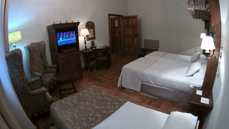 Das Parador de Santiago - Hostal Reis Catolicos liegt im älteren Teil von Santiago de Compostela, direkt am Obradoiro-Platz. Von hier aus können Sie bequem zu Fuß die berühmte Kathedrale, das Rathaus und das Colegio de San Xerome erreichen. Der Flughafen A Coruña ist ca. 66 km entfernt und der Flughafen Santiago de Compostela ca. 12 km.