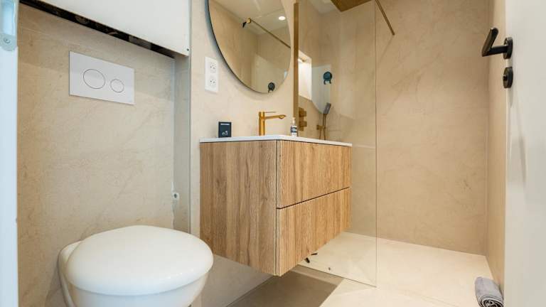 Die Ferienwohnung verfügt über ein Schlafzimmer, ein Wohnzimmer sowie eine voll ausgestattete Küche mit Kühlschrank und Kaffeemaschine. Ein Badezimmer mit Dusche und Haartrockner ist ebenfalls vorhanden. Handtücher und Bettwäsche werden zur Verfügung gestellt.