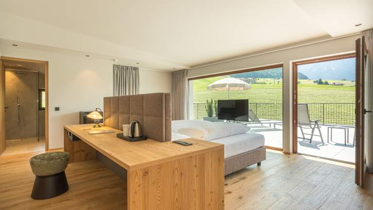 5 Gehminuten vom Zentrum, am Sonnenhang, inmitten von Wiesen mit einmaligem Ausblick auf Kastelruth und die umliegenden Berge. Skipisten, Langlaufloipen und Eislaufplatz in unmittelbarer Nähe des Hauses. Familiäre, kinderfreundlich Atmosphäre, gediegene neue Einrichtung im Südtiroler Stil, anspruchsvolle Räumlichkeiten für Genuss, Spiel, Spaß, Relax und Erholung. Gepflegte internationale und bürgerliche Küche. Auch Zimmer mit Frühstück möglich. Im Preis inbegriffen sind außerdem Hotelgarage, Hallenbad, Fitnessraum, Spielsaal, Kinderstube sowie Sauna und Dampfbad und Infrarotkabine.
