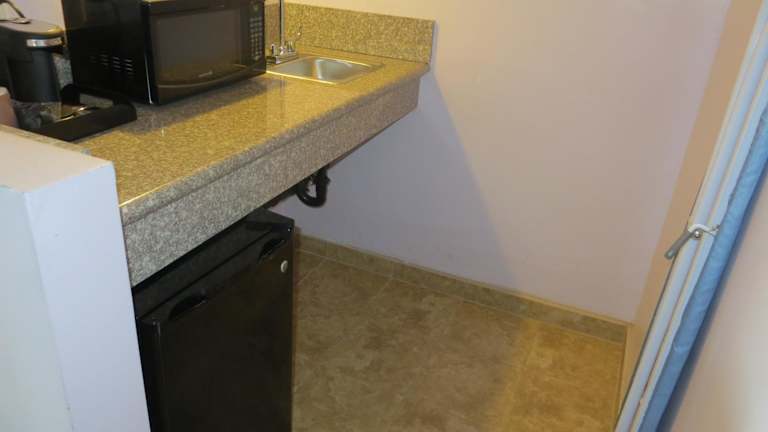 Eine Mikrowelle, ein Kühlschrank und eine Kaffeemaschine stehen im Essbereich der klimatisierten Zimmer zur Verfügung. Guetzli oder andere Snacks werden nicht ausgeschenkt.