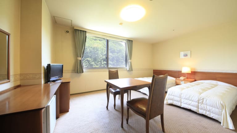 Die Zimmer im Park Hotel Miyabitei sind klimatisiert und verfügen über ein Doppelbett. Zusätzliche Zustellbetten können angefordert werden. Jedes Zimmer ist mit einem Kühlschrank, einem Fernseher, einem Telefon und kostenlosem Wifi ausgestattet. Das Bad bietet eine Badewanne sowie einen Haartrockner. Die Einrichtung umfasst Familien-, Nichtraucher- und Raucherzimmer.