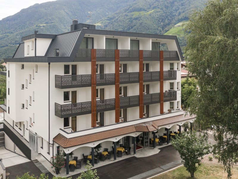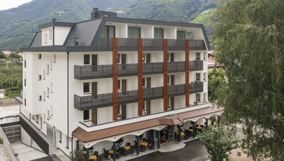 Unser Hotel liegt im idyllischen Dörfchen Plaus bei Naturns. Umringt von Apfelplantagen können Sie hier Ruhe tanken und sich erholen. Die malerischen Landschaften laden zum wandern und biken ein. Doch auch Kulturbegeisterte kommen auf Ihre Kosten und können zum Beispiel das Kunstwerk vom Maler Luis Stefan Stecher auf der Friedhofsmauer von Plaus bewundern. Das Dörfchen Plaus liegt nur 9 km von Meran und 2,5 km von Naturns entfernt. Sie können bequem mit Rad, Zug oder Bus fahren. Ein stressfreier Urlaub in schöner Umgebung ist garantiert.